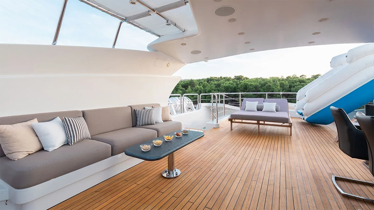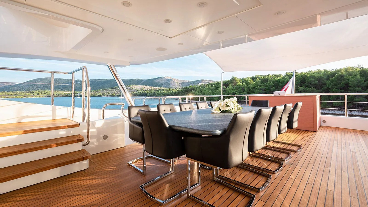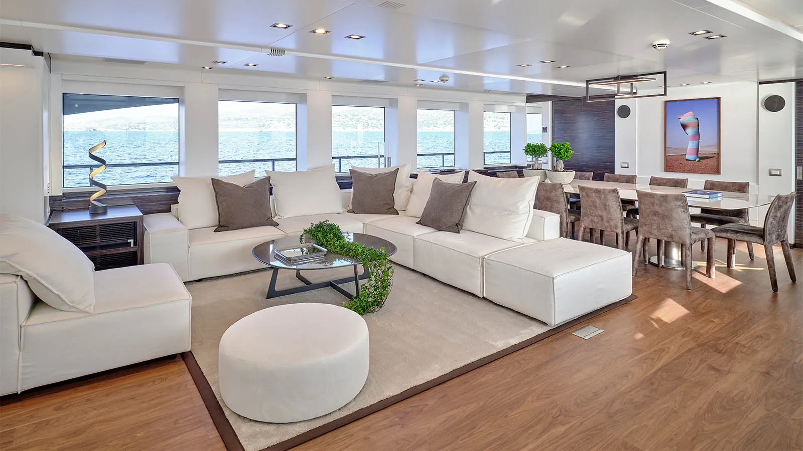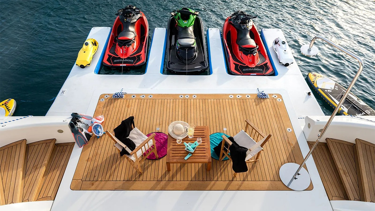 Motor yacht Africa I boasts a wealth of convivial spaces, perfect for luxury yacht charters with families of friends, offering ample opportunities to kick back and relax, or enjoy the water on the yacht's array of water toys, the choice is yours.