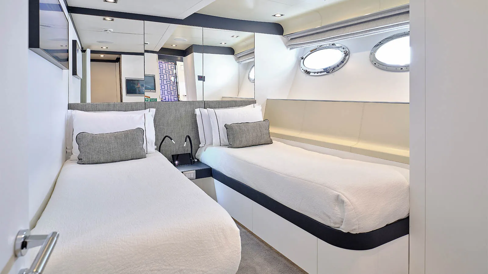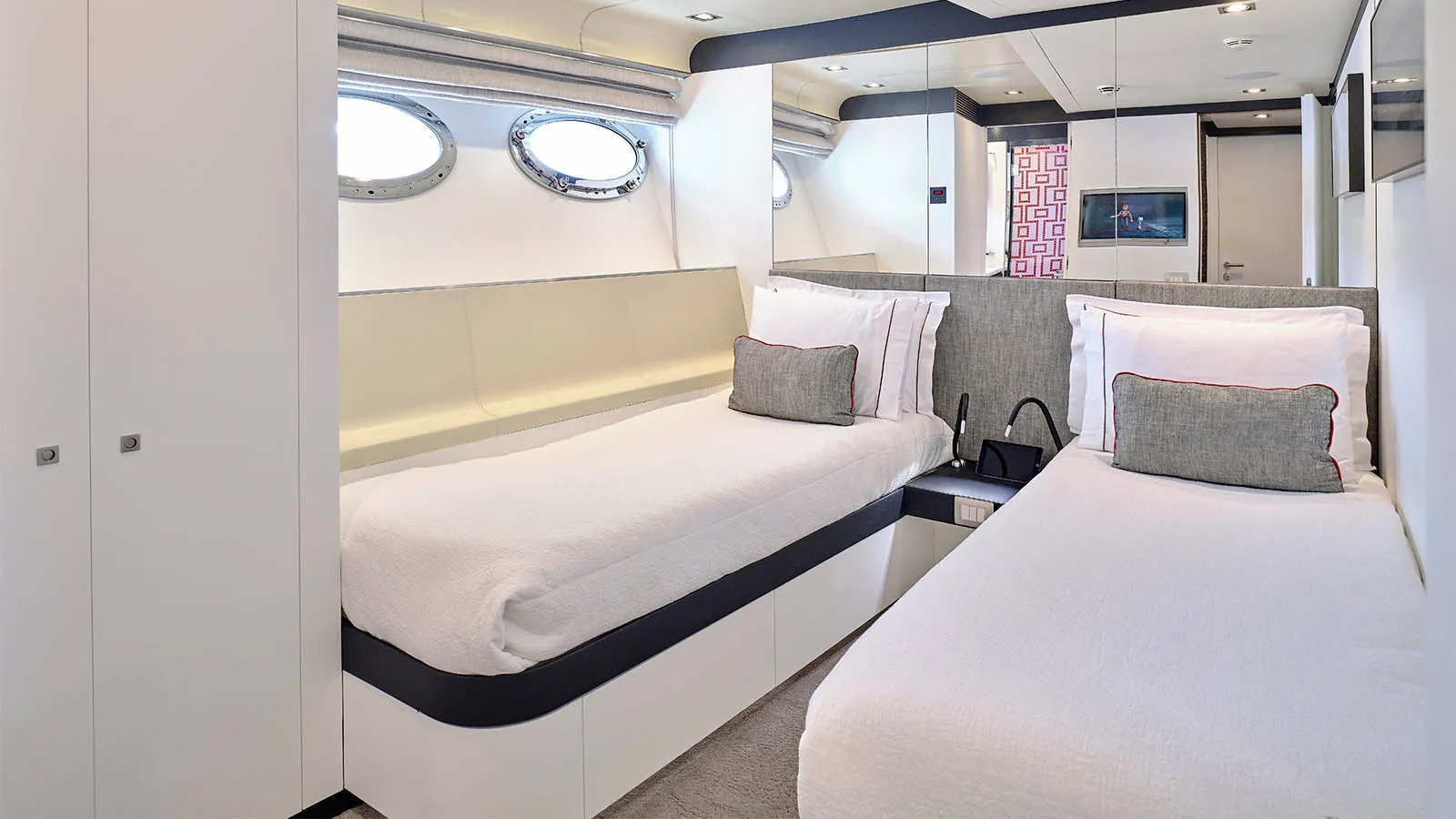 Built in 2010, Africa I offers guest accommodation for up to 12 guests in 6 suites comprising a master suite, three double cabins and two twin cabins. The bed configuration includes 1 king, 3 doubles and 4 singles. She is also capable of carrying up to 10 crew onboard to ensure a relaxed luxury yacht charter experience.