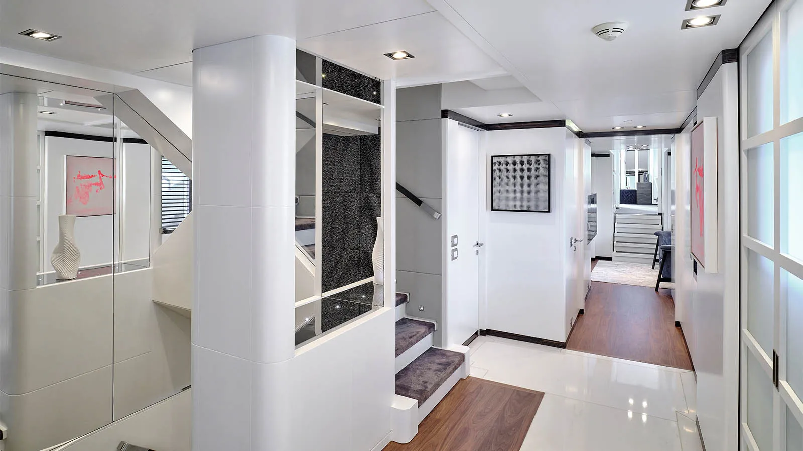 Built with a aluminium hull and aluminium superstructure, she benefits from a semi-displacement hull to provide exceptional seakeeping and impressive speeds. Powered by twin MTU engines, she comfortably cruises at 16 knots, reaches a maximum speed of 23 knots with a range of up to 3,915 nautical miles from her 65,000 litre fuel tanks at 12 knots. Africa I features at-anchor stabilizers providing exceptional comfort levels.