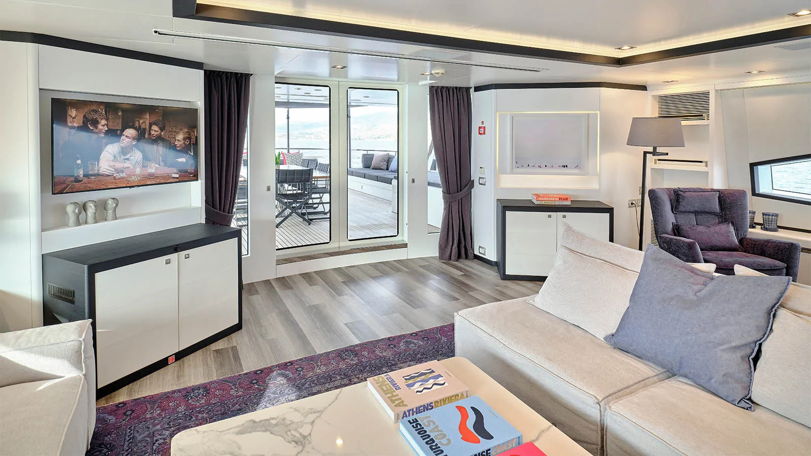Whatever your activities on your charter, you'll find some impressive features are seamlessly integrated to help you including Wi-Fi connectivity, allowing you to stay connected at all times, should you wish. You can stay comfortable on board whatever the weather, with air conditioning during your charter.