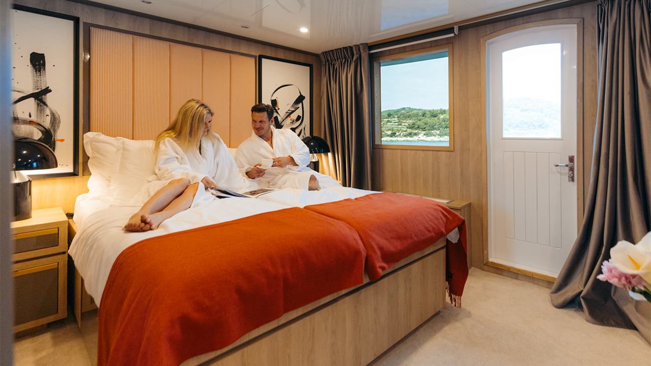 The main deck hosts the majority of the guest accommodation, with the foyer amidships and the galley, crew lounge and technical spaces aft.