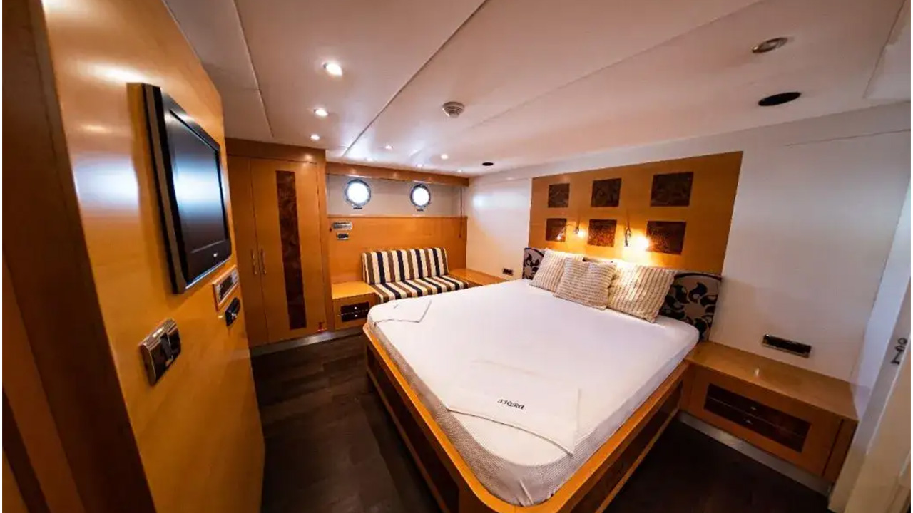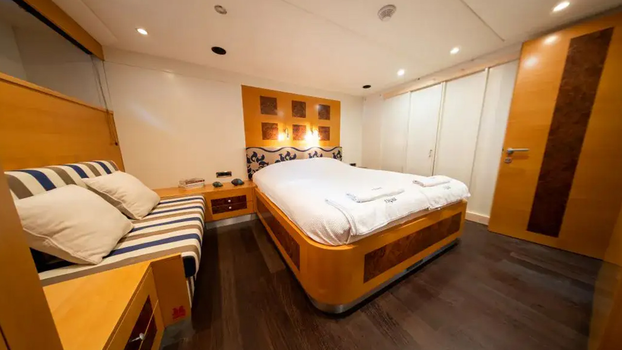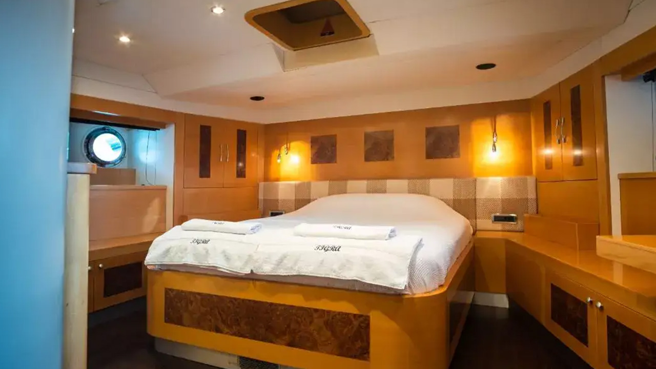 Tigra can accommodate up to 10 guests in 5 tastefully designed cabins, including a master suite, a VIP suite, a double cabin, and two twin cabins. The professional and friendly crew of 6 will cater to your every need, ensuring a seamless and enjoyable charter experience.