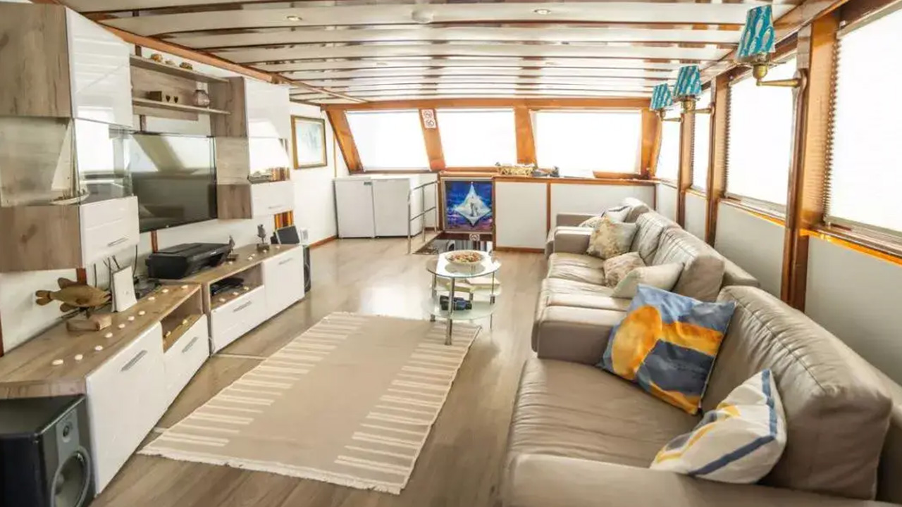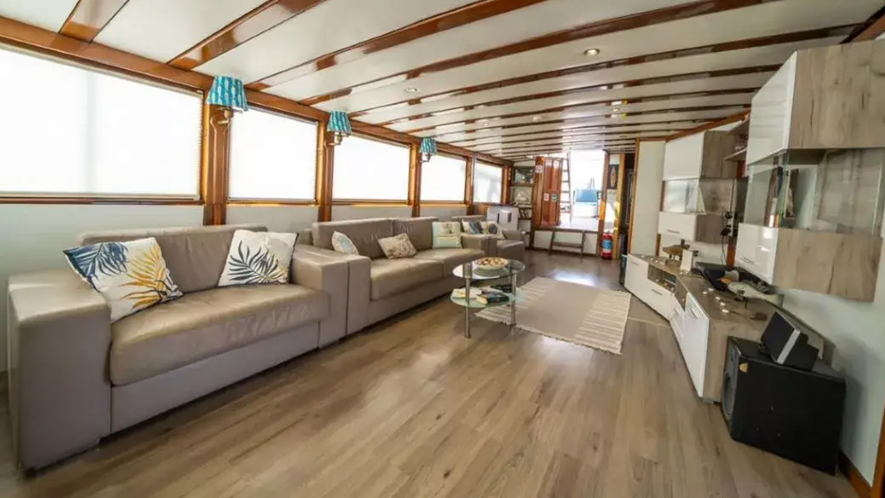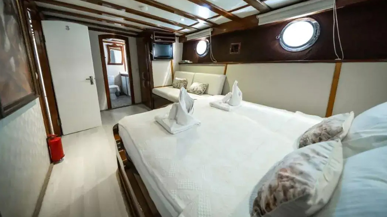 Located in the Bodrum, the White Swan is available for charter in Turkey and Greece, and specifically the Dodecanese Islands. It has a charter rate starting from 21,000 EUR per week, making it an affordable option for a group of friends or a large family.